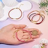 Craftora 5Pcs Round Braided Imitation Leather Cord Bracelet Making, Red Pink Adjustable Braided Rope Bracelet Faux Leather Wristbands Cords with Beadable Bar for DIY Craft Jewelry Making