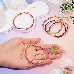 Size: about 7-1/8 inch(18.2cm)+extender: 42.5mm, 3mm wide, pin: 1mm, 1pc/color, 5 colors, 5pcs Adjustable Bracelet Cords: Our braided cord bracelets is adjustable. The extended chains with lobster clasps, firmly holding the bracelet to the length you desire, adjust to fit the wrist size Well Made: This adjustable slider bracelet cord are mainly made of quality imitation leather and the findings are made of stainless steel lobster clasps & brass beadable bar, not easy to wear, sturdy, and does not easily discolor, enough for long service life Easy to Use: Just put some large hole beads, charms, pendants or other tiny ornaments on these slider beadable bar components, finally install the entire bracelet DIY Gift: Our friendship adjustable bracelets thread can be a meaningful gift, you can add various charms and beads on them to make them unique. Makes a DIY gift for your family, friends, teachers when coming across anniversary, birthday, graduation,etc