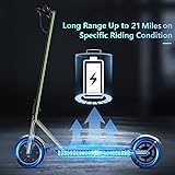 350W Motor: Our electric scooter equipped with improved motor, you can experience a smoother, more powerful ride with our upgraded 350w brushless motor, delivering speeds up to 19 mph,has a max range of 21 miles, which is ideal for daily commutes partner, scooter max load 264 LBS. Smart App: The electric scooter is equipped with an intelligent control system offering features like 4 speeds adjustment, cruise control, lighting settings, and real-time ride diagnostics, switch start modes etc. Portable & Compact: The lightweight e-scooter fits neatly in your car trunk or tight spaces , effortlessly foldable in seconds, its small size making storage and transport a breeze for your busy lifestyle. Durable Design: This escooter equipped with 8.5-inch solid honeycomb tires, does not require inflation, repair, maintenance, Provide a stable, comfortable ride during your riding. Safety-First: The scooter for adult prioritizes your safety, ride with confidence thanks to dual braking (electronic + mechanical) and integrated front/rear lights, ensuring enhanced visibility and control, day or night Warranty Service: If you are not satisfied or has any problem with our product, please feel free to contact us, we will solve your problem within 24 hours TIPS: 1. To ensure the battery life is not affected, always fully charge the scooter before use; 2. Remember to fully charge the scooter regularly when it will not be used for extended periods. TIPS:If the motor does not respond, you need to check if the throttle has returned to its correct position. Tips: If you encounter a problem with the scooter charging, please check whether the charger is correctly connected, the red indicator light of the charger is on during normal charging, and the indicator light turns green after charging is completed.