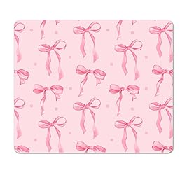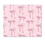 Square Pink Mouse Pad Small, Cute Computer Mouse Pads with Bows, Non-Slip Rubber Base Mousepad Washable Cloth, Mouse Mat Decor Gifts, Coworker Gift for Girls Kids