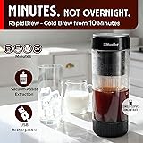 Mueller RapidBrew Cold Brew Iced Coffee Maker – 10 Min Fast Brew Portable Rechargeable Cold Brew Machine for Coffee & Tea – Adjustable Strength 10-99 Min – 20 Servings Per Charge, Black Coffee