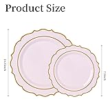 Ciselure 120PCS Gold Plastic Silverware and 120PCS Pink Plastic Plates, Disposable Elegant Party Plate with Gold Rim