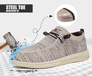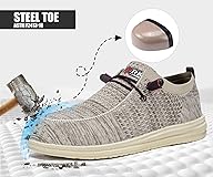 Light Enough to be Uninhibited - The women's steel toe loafers are designed with a casual approach, widen toe allowing you to keep the flexible without the distraction of heavy shoes. Steel Toe Loafers - The wide steel toe cap pass ASTM F2413-18 safety standards, effectively shields your toes from heavy objects and impacts, ensuring your safety at work. Make Life a Little Easier - Slip-on design avoids the cumbersome process of tying shoelaces, portable laces also ensure that your shoes don't fall off while you're walking and working. Our walking sneakers make your work more efficient. Breathable and Comfortable - LARNMERN work safety toe loafers also keep your feet dry and breathable in the hot summer, let the pressure be released along with the breathable fabric, you just need to enjoy life itself. How to be More Comfortable - Shock-absorbing design reduces foot fatigue and discomfort while keeping you comfortable all day. Adjustable shoe shape leaves more room for different foot shapes to wear and move around, provides you with an excellent wearing experience.