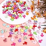 HOBBIESAY 300Pcs 2 Sizes Colorful Cross Beads Bulk Small Cross Bracelet Bead Acrylic Crosses Loose Spacer Beads DIY Craft Bead Accessories for Women Bracelet Jewelry Making 2mm Hole Random Color