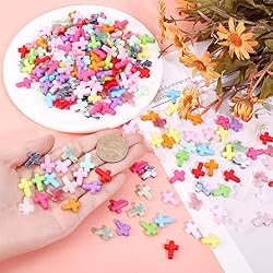 Two Style Variety: This bulk set includes 300 colorful cross beads in 2 distinct style variations measuring 0.63 x 0.47 x 0.18 inches and 0.61 x 0.47 x 0.18 inches, providing visual diversity for your jewelry designs while maintaining cohesive thematic elements across all your craft projects Imitation Gemstone Quality: Crafted from premium acrylic with imitation gemstone finishes, these cross beads offer the luxurious appearance of genuine gemstones at an price point the material captures and reflects light beautifully adding depth and brilliance to your DIY creations Versatile Spacer Application: These small crosses bracelet beads feature a consistent 0.08 inch hole size, making them perfect spacer beads for bracelets necklaces keychains and other jewelry, projects their uniform hole diameter ensures smooth stringing with various threading materials Professional Storage Organization: The beads come neatly organized in a transparent plastic storage box measuring 7.44 x 4.41 x 0.67 inches, allowing for easy sorting and access to your colorful cross beads while keeping your workspace tidy and your craft bead accessories protected from damage Generous Bulk Quantity: With 150 pieces of each style, totaling 300 beads this set provides ample supply for multiple creative endeavors the quantity supports both personal jewelry making projects and small business production needs without compromising on quality or consistency