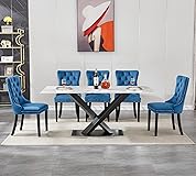 【Faux Marble Dining Table Set for 6】This 7 piece dining table chairs set includes: 1 x 70'' rectangle dining table and 6 x velvet dining chairs. Modern dining table and chair combo are suitable for 6 people at a time. Compact modern kitchen table set, not only to provide dining functions, but also compatible with different decoration styles. 【70-Inch Tempered Glass Dining Kitchen Table】With imitation marble pattern, tempered glass tabletop is sturdy and beautiful. The strong carbon steel base have a firm grip with the help of the top, making the table as a strong and reliable option for long time. And the rectangular dining table Set is ideal for any dining room, giving a clean and polished look to any room, with its X-base and white table Top. 【Armless Fabric Dining Chair Set of 6】This medieval modern dining chair features high-quality artificial velvet on its surface, adorned with foam for a comfortable and relaxed sitting experience. The legs of the dining chair are made of solid wood and its maximum load-bearing capacity is 280 pounds. 【Rectangular Dining Room Table Set for 6】This kitchen table and chair set is ideal for family and friends for daily meals and gatherings. We have a variety of different color chairs matches, you can choose the set you want to match your home decoration style. The dining table chairs set can be used in the home, kitchen, living room and dining room. 【Easy to Assemble 6-Seater Table Chairs Set】Assembly instruction and assemble tools are included, easy to install. Most people can do in 10-15 minutes. If you have any questions, please feel free to contact us. If you receive products with broken or missing parts, please contact us to replace them.