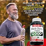 Enjoy 12,000 mg equivalent of pure black cherry extract per serving for maximum potency in every serving. Each bottle contains 180 easy-to-swallow, quick-release capsules for convenient daily use. Crafted for effectiveness, our black cherry capsules support your wellness routine and active lifestyle. Experience the robust benefits of cherry pills, expertly formulated for quality and consistency. Discover the difference with our premium black cherry | 180 capsules | 12000 mg | cherry pills | black cherry capsules.