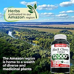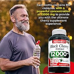 - Experience the deep, tangy essence of black cherry with our premium Black Cherry Capsules, each serving delivers a potent 12,000 mg equivalent of pure black cherry extract. Encased in easy-to-swallow, quick-release capsules, this supplement offers both convenience and effectiveness. With 180 capsules per bottle, support your wellness journey. Enjoy the robust benefits of black cherry pills, expertly crafted to fit your lifestyle. Discover the difference with our black cherry capsules.