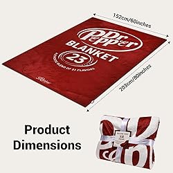 - Experience premium comfort and true fan energy with the Dr Pepper XL Throw Blanket — the ultimate upgrade for anyone who wants more than just a basic printed throw. Measuring a full 60x80 inches, it’s noticeably larger than standard fan blankets, giving you complete head-to-toe coverage for Netflix nights, gaming marathons, or cozy days at home. Crafted from high-quality flannel fleece, this blanket delivers a buttery-soft feel that stays plush, smooth, and vibrant wash after wash. Unlike typical novelty throws that fade or pill over time, ours features a high-definition Dr Pepper design with rich color depth that keeps its bold look intact. It’s lightweight yet warm — the perfect balance for year-round comfort. Whether you’re decorating your dorm, upgrading your sofa, or adding character to your game corner, this blanket doubles as both a comfort essential and a unique fandom collectible. It blends nostalgia, style, and coziness in one piece — ideal for Dr Pepper lovers of every age. Thanks to its durable stitching and reinforced edges, this throw stays in top shape even with daily use. It’s machine-washable, low-maintenance, and gets even softer over time — no fading, shedding, or fabric thinning. Arriving beautifully packaged, it makes a standout gift for holidays, birthdays, and fans who appreciate something special. A perfect choice for anyone searching for Dr Pepper merch, Dr Pepper gifts, or a cozy signature throw. Enjoy comfort, personality, and premium quality — all in one iconic Dr Pepper blanket.