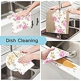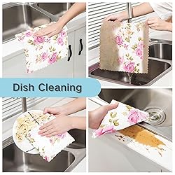 Bolaz Dish Cloths Dish Towels Kitchen Towels 6 Pack Sets Absorbent Pink Rose Floral White Soft Decorative Reusable Nonstick Oil Washable