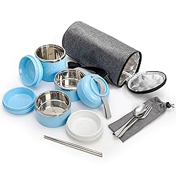 You will get 3 tier stainless steel lunch box with a right sized insulated handbag and spoon and fork, the bottom bowl capacity is 600ml, and the other layer bowl capacity is 400ml Our to go lunch box is made from food-grade stainless steel SS304 which is easy to clean and naturally BPA-free, rust-free; Portion control size ensures easy organization and convenience on the go Space-saving and Easy to Carry: This stackable lunchbox is designed with stackable design for saving space, the silicone handle are sturdy to carry and take good service for you Perfect for work lunches, picnics, outside activities, travel, camping and beach days, even for eating healthier or busy individuals who want to enjoy homemade meals on the go, It takes up less space in backpacks or handbags Suitale for meal prep, salad, fruits, rice, separated design to keep your meals fresh and food without mixing flavors, ensure the original taste of food
