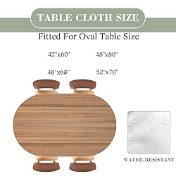 Perfect Fit: Suit for 48"x68" Oval Table. The elastic band closure makes installation very convenient Material: Made of polyester material, waterproof and easy to clean; Can prevent beverages, wine, oils, high temperatures, scratches, etc Widely Used: This oval table cover is perfect for indoor and outdoor decoration, hosting parties, holiday celebrations and barbecues, cafes, weddings, Thanksgiving and Christmas dinners, and more Washing Instructions: Hand wash and machine wash are allowed, do not bleach, hang and dry. If necessary, low-temperature ironing can be used to make the tablecloth smoother and more beautiful Customer Service: If you have any further questions about this product, you can consult us and we will reply to you as soon as we see the message. Thank you for visiting our store