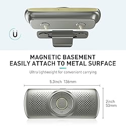 【CAR PHONE SPEAKER HANDSFREE】Built-in 3W microphone, based on excellent noise reduction and echo processing technology, will give you clearer call quality and more pleasant music, making your car journey full of fun and safety. The magnetic back clip makes it easy to mount on the car's sun visor. NOTES: Please use a normal plug. If you use fast charging for a long time, the charging IC may be damaged 【BLUETOOTH 5.3 SPEAKER FOR CAR】Bluetooth 5.3 stable and fast connection, supports automatic shut-off and reconnection. Double click the M button of the hands-free kit, activate Siri or Google Assistant, help answer calls or SMS or retrieve a route, safer while driving 【PORTABLE BLUETOOTH SPEAKER】Simply connect the device to your phone, then place the Bluetooth speaker set for the car via the clip on the car's sun visor. The magnetic basement design is suitable for use in the car, at home, in the office or outdoors. Play music via Bluetooth or via the TF card, share your beloved songs with friends or family 【PERFECT GIFT】Perfect gift for your mom, dad, wife, husband, sibling, cousin or anyone you care about. Nowadays in almost every country, it’s illegal to talk on your cell phone while driving, you might still need to take that important call, then This gadget is PERFECT for you. It allowed you to super easy talk wireless and hands-free with your friend, parent or business partner 【EXCELLENT BATTERY LIFE】After 2 hours full charge, music playback time: 9-10 hours; Hands-free time: 16 hours. Power cable included, the longevity of this Bluetooth hands-free kit makes it ideal for all your long journeys
