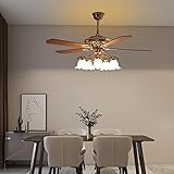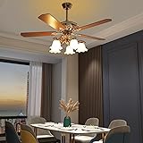 NIENIEE 52" Vintage Ceiling Fan with Light - Remote Control 6-Speed Flush Mount Fan with LED, 5 Wood Blades for Bedroom/Living Room/Dining Room (Gold,5203CFM)