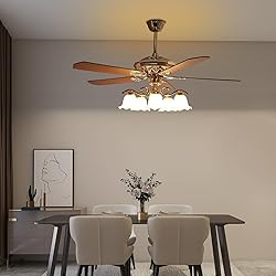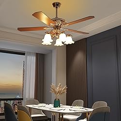 【Vintage Gold Design】 – This vintage ceiling fan features wooden blades and a metal frame for classic elegance. 【6-Speed Adjustable Airflow】 – Choose from low to high settings on this gold ceiling fan for personalized comfort. 【Reversible Motor Function】 – The ceiling fans with lights and remote can circulate warm air in winter and cool air in summer. 【Quiet 47dB Operation】 – Provides peaceful airflow without disrupting sleep or work environments. 【Easy Installation & Cleaning】 – Includes two suspension rods (3.94”/9.84”); smooth surfaces wipe clean easily.