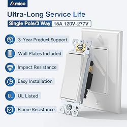 - Amico 30 Pack Single Pole and 3-Way Light Switch with Wall Plate, UL Listed, 15A 120/277V, On/Off Rocker Interrupter Wall Switch, Grounding Screw, Suitable for Home and Business, White