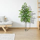 - 6FT Ficus Tree Artificial with White Planter, Faux Trees Indoor Realistic Artificial Trees Tall Plant for Home Office Living Room, Porch, Garden Decor