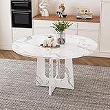 Maxtude 47.2" Round Dining Room Table, Wood Kitchen Table with Trestle Base, Farmhouse MDF Circle Table with Marble White Finish, Easy Assembly (White)