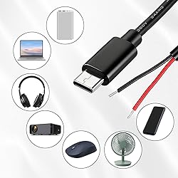 Package Includes: You will receive five USB-C to 2-pin bare wire power cables, each 30 cm (approximately 11 inches) long, suitable for multi-device modification and soldering, making them convenient for backup and batch operations. Precise Cable Specifications: The USB Type-C male 2-pin pigtail cable utilizes 20AWG thickened pure copper wire and supports stable 5V/5A power. Clear red and black markings (red for positive, black for negative) effectively prevent wiring errors and ensure safety and reliability. Easy Soldering and Installation: The USB Type-C 2-pin bare wire tail is tinned for easy soldering and fastening, connecting to various 5V-powered devices. The secure connector prevents loosening, making DIY modifications hassle-free. High-Quality and Durable Material: The usb c power cable thickened PVC outer jacket is flexible and resistant to bending, effectively protecting the high-purity copper conductor within. It offers low resistance, high conductivity, and provides stable current flow, extending its lifespan. Widely Compatible with All 5V Devices: Usb replacement plug compatible with all 5V devices. USB-C fast charging interface devices, such as driving recorders, LED desk lamps, small fans, bedside lamps, smart phones and other computer peripheral low-power appliances, flexibly meet a variety of power usage scenarios
