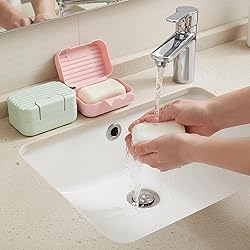 - 3 Pack Portable Bar Soap Holder Plastic Soaps Dish with Lid Cover Travel Soap Container Leakproof Storage Container Soap Box for Bathroom Shower Kitchen Sink Travel Camping Hiking Gym OutdoorMain functions: This travel case features a stylish and elegant design. The tight-fitting lid prevents soap leaks, and the snap closure prevents accidental opening, keeping your luggage clean. It's a reliable travel companion.Color: Blue, Pink, GreenProduct size: 4.33 × 3.15 × 1.97 inches/10.7 × 7.5 × 5 cmProduct includes: 3pcs × Soap Holder