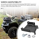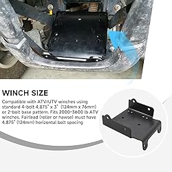 Vehicle Compatibility:This ATV winch mount bracket plate is compatible with Suzuki KingQuad 450 (2007–2010), 500 AXi (2009 & 2011–2025), 700 (2005–2007), 750 (2008–2025) four-wheeler ATVs winch mounting plate accessories Winch Size:Compatible with ATV/UTV winches using standard 4-bolt 4.875" x 3" (124mm x 76mm) or 2-bolt base pattern. Fits 2000–3600 lb ATV winches. Fairlead (roller or hawse) must have 4.875" (124mm) horizontal bolt spacing Winch Compatibility:Compatible with WARN (VRX/AXON/ProVantage 2500–3500), Superwinch (Terra/LT 2000–3500), Mile Marker (PE/VMX 2.5–3.5), Badland ZXR 3500, Champion 3000, VIPER 3000–3500 winch Material:Made of approx. 1/4" thick heavy-duty steel with a black powder-coated finish for enhanced strength and durability.Includes 4 bolts, 4 nuts, and 4 washers.Pre-drilled mounting holes Function & Installation:Securely positions the winch on the ATV’s front frame for towing, hauling, or recovery use. Supports standard roller or aluminum hawse fairleads with 4.875" bolt spacing. Please verify winch and fairlead hole patterns before purchase