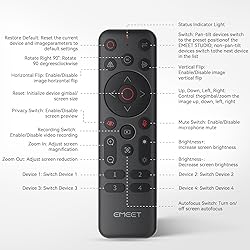 Built for the EMEET P-Series Family – Fully compatible with all EMEET 4K dual-camera streaming webcams: PIXY, Piko, and Piko+. Requires EMEETSTUDIO for full function access. No battery included. EASY SETUP & SMOOTH CONTROL – Install 2 AAA batteries (not included, follow the positive and negative marks), plug the USB receiver into your computer, and connect EMEET PIXY/Piko+/Piko 4K Webcams. Keep the remote within 32.8 ft (10 meters) for best performance. Open EMEET Studio to start operating your device effortlessly. Precision PTZ Control – Instantly adjust pan, tilt, and zoom for PIXY with one click. Designed for streamers, educators, and pros who need fast, stable, and accurate framing on the fly. AI Tracking & Preset Access – Activate auto-tracking or switch between preset views during live sessions for PIXY—no need to reach for your mouse. Seamless scene switching boosts production value. Basic Image Adjustment Made Easy – Control brightness, zoom level, mirroring, and flip functions directly via remote. Fine-tune your visuals in real time without touching software controls. Privacy at Your Fingertips – One-tap privacy mode helps protect your space. Whether you're pausing a call or stepping away, simply tilt to hide the lens via remote—secure, silent, and quick.