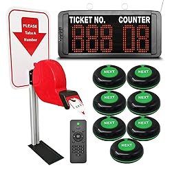 KOQICALL Take a Number Machine 3-Digit Queue System for Customers with 1 LED Display Broadcast Ticket and Counter Number 7 Waterproof Next Call Button 1 Red Ticket Dispenser Stand