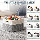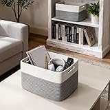- Simplify your home organization with our 5 Pack Woven Cotton Rope Storage Baskets — designed to combine functionality and aesthetic appeal. Each rectangular basket measures 13.8""L x 9.8""W x 7.9""H, perfect for organizing toys, books, clothes, towels, toiletries and daily essentials. Crafted from 100% natural cotton rope, these bins are soft to the touch, safe for kids, and free from toxic materials or sharp edges. Their neutral beige and white tones seamlessly fit into any home decor style — from modern minimalist to rustic farmhouse. Whether placed in your nursery, closet, bathroom, or living room, these baskets keep everything organized while adding a touch of elegance. Durable yet lightweight, they are easy to carry, stack, and store when not in use. Perfect for families, parents, pet owners, and anyone who loves a clean, cozy home. This 5-pack of cotton rope storage bins is the perfect choice for stylish and practical organization. — your home deserves it.
