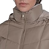 - Stay warm and stylish with this women’s hooded puffer jacket, featuring a lightweight quilted design and insulated padding for cozy comfort without bulk. The zip-up front and two secure zipper pockets make it practical for everyday wear, while the hood adds extra protection from wind and cold. Made with durable, water-resistant fabric, this winter coat is perfect for casual outings, commuting, travel, or outdoor activities. A versatile piece that combines warmth, comfort, and style, this lightweight puffer jacket will be your go-to layer all season long.