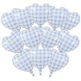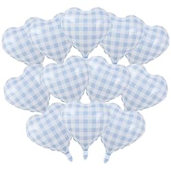 - Transform your special occasions with these charming 18-inch blue and white checkered heart balloons by YiYou. This set of 12 foil Mylar balloons features an eye-catching checkered pattern that adds a delightful touch to any celebration. Perfect for creating stunning displays at weddings, baby showers, Valentine's Day festivities, Thanksgiving gatherings, or birthday parties. The generous 18-inch size makes a bold statement in your party space, while the durable Mylar material ensures your decorations maintain their shape throughout your event. These versatile heart-shaped balloons can be arranged in clusters, arches, or scattered individually to achieve your desired decorative effect. Create memorable photo opportunities and enhance your party atmosphere with these stylish checkered heart balloons that blend classic charm with modern design.