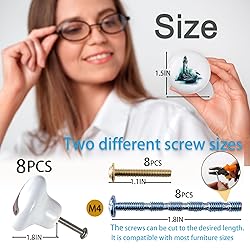 【Package & Size】: Each set includes 8 ceramic cabinet knobs with 2 screw options (short: 1 in, long: 1.8 in). The dual-size screws make these dresser drawer pulls versatile for different furniture thickness, ensuring a perfect fit. 【Easy Installation】:Designed for most standard cabinets and drawers, these ceramic drawer knobs are quick to install and convenient to use. just check screw length before purchasing to ensure the best fit. 【Durable & Secure Fit】:With two screw sizes included, these knobs match IKEA furniture perfectly while also fitting dressers, nightstands, and cupboards. The strong metal hardware keeps the knobs from loosening or falling off, making them reliable for daily use. 【Cute & Charming Designs】:Featuring fun patterns like snail, flamingo, dinosaur, fox, mushroom house, lighthouse, and truck, these decorative cabinet handles bring a playful and artistic touch to kids’ rooms, nurseries, or any space in need of personality. 【Personalized Home Decor】:More than just cabinet hardware, these unique ceramic knobs are a simple way to refresh old furniture, add character to a dresser, or create a customized look in your home.