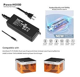 - PowerHOOD 24V AC/DC Adapter Compatible with AtomStack P1 P1-PA Mini Dual Laser Engraver & Cutter Unibody Laser Engraving Machine 24VDC 24 Volts TDX72-2403000 Switching Power Cord Charger Cable
