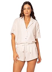 Sleep Short Sleeve Front button placket Contoured waistband Adjustable waistband with draw cord Mid rise