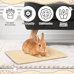 Valuable Package: 1 piece rabbit scratching pad with the size of 38X30 /15X11.8 inches, which are very suitable for small pets such as rabbits, Guinea pigs, chinchillas and kittens. You can put rabbit scratch mat in different areas of the pet cage or change them for use, providing a comfortable living space for your pets Reliable Sisal Material: Bunnies scratch pad is made of good-quality natural sisal fiber, which has good durability, can provide a good scratch surface for rabbits, can withstand long-term scraping and chewing, is comfortable and breathable,rabbit nail scratch pad is very suitable for hot weather Multi-Purpose Scratch Pad: Rabbit scratching pad can not only be used as a rabbit scratch and chew toy, but also help to trim nails and teeth, and provide mental stimulation and exercise. Rabbit scratch mat can also be used as a comfortable rest place, which can be placed in cages, crates, floors, sofas, carpets and any room in your home Non-Slip Design: The back of the rabbit nail scratch pad is designed by hook and loop, so you can firmly fix rabbit scratching pad anywhere you want. Even if your pet scratches hard, rabbit scratch mat will stay in place to avoid pet from slipping and provide protection for your furniture or carpet Easy to Clean and Maintain: Rabbit scratching pad has a longer service life than cardboard grab pads, and are more convenient for daily cleaning and maintenance. You only need to shake off dirt or wipe with a cloth, or you can use a vacuum cleaner to clean the surface, which can keep rabbit scratch mat in the good condition, provide a clean and hygienic place for your pet, and save time and energy