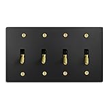 SELECT 4-Gang Solid Brass Toggle Switch, Black Finish w/ Brass Accessories, 15A 120V AC Wall Mount, Vintage Style Single Pole & 3-Way Compatible, with Faceplate & Switch Module, UL Listed