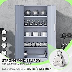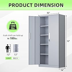【Integrated Frame】: White storage cabinet with doors is made of 0.88mm thick cold-rolled steel and can hold 180 pounds per layer, up to a maximum of 900 lbs. It's a 72 X 32 X 16 inch heavy duty storage cabinet with upgraded powder, which is more durable, longer use time 【Secure Storage】: Tall steel storage cabinet with 2 door and 4 adjustable shelves to accommodate items of all sizes. The locking file cabinet with 2 Locking keys and 3-pointed locking system can highly secure your belongings 【Wall Mounted Design】:Steel storage cabinet features a stability design with 2 pre-holes on the back of office cabinet, help locker cabinet for garage be mounted to the wall, avoidding topple over 【Multi-scene】: 2 door storage cabinet design with high-grade lock picking to secure valuables. This large steel storage cabinet adds extra space to any room can place it in office, home, warehouse, garage, basements, etc 【Easy Assembly】: Steel cabinets can be assembled quickly with manuals and video instructions for you. Before assembling, carefully inspect the components of the 71 inch storage cabinet