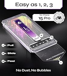 2-PACK Ultra-Durable Tempered Glass: Designed for iPhone 15 Pro; Top Ultra-Durable 9H Tempered Glass for Superior Protection; perfect for Apple iPhone 15 Pro screen protector EASY Installation: Innovative Auto-Dust & Alignment Kit ensures Perfect, Bubble-free Application; Easy Installation for iPhone 15 Pro Glass Screen Protector and for iPhone 15 Pro Screen Protector ULTRA RESISTANT: Military-Grade Tempered Glass offers unmatched Shatterproof and Scratch-Resistant Performance; ideal for iPhone Screen Protector 15 Pro and for tempered glass iPhone 15 Pro - Ultimate Protection CRYSTAL CLEAR HD and Touch Sensitivity: True HD Clarity and Touch Sensitivity; preserves Original Viewing Quality and Responsiveness; Perfect for iPhone 15 Pro Tempered Glass and for iPhone 15 Pro Screen Protector Pre-Installed Glass - With the pre-installed Glass Screen Protector, you can enjoy a Perfect, Bubble-Free Application. Simply peel off the sticker, place it on your phone using the tray, and press.