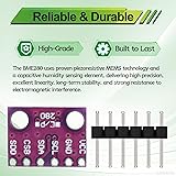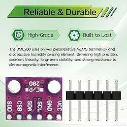 High-Precision Three-In-One Sensor: This GY-BME280 sensor module accurately measures temperature, humidity, and atmospheric pressure. You can trust it to deliver accurate readings for altitude measurements, weather monitoring or even gaming applications Optimized 3.3 Volt Operation: Designed for stable performance with a main supply voltage of 3.3 volts; This BME280 module ensures safe and efficient integration with a wide range of 3.3V compatible microcontrollers and systems Dual Interface Flexibility: Featuring both I2C and SPI communication protocols, this atmospheric pressure breakout offers versatile connectivity. You can choose the ideal interface for Raspberry Pi or for Arduino setup. Extensive Measurement Range: This BME280 3.3V sensor module measures temperature from -40°C to +85°C, humidity 0-100%, and pressure 300-1100 hPa. It performs reliably in diverse and challenging environmental conditions. Industrial-Grade Performance: Designed for stability and low power consumption, this temperature humidity atmospheric pressure breakout is ideal for professional applications. It ensures consistent readings for your coding and development needs.