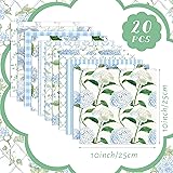 HunnmingRe 20 Pcs 10''x10'' Hydrangea Quilting Fabric Square Bundle Watercolor Dusty Blue Floral Precuts Quiltted Fabric Printed Patchwork Material Supplies for Holiday Patchwork DIY Sewing Crafts