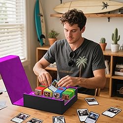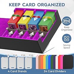 - OEODAJ Trading Card Storage Box for Trading Cards, Commander Deck Boxes with 24 Colorful Dividers and 4 Stoppers, 4 Rows 2400+ MTG Deck Box for YuGiOh, MTG, TCG, Black Purple.