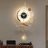 Modern Wall Clock for Living Room,Large Gold Decorative Wall Clock with light,Creative Silent Clock Battery Operated for Kitchen/Entryway/Bedroom/Office/Dinning Room Metal Wall Decor (15.7"Wx31.5L)