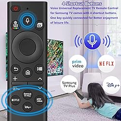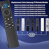 【Wide Compatibility】Replacement remote is designed for ALL Voice Samsung series TVs from 2019 to 2025, compatible with Samsung Smart TV Neo QLED UHD The Frame QLED 4K 8K Crystal Smart TVs, Crystal UHD, The Serif, The Terrace, The Sero, and Micro LED models. NOTE: only suitable for Samsung smart TVs with voice function, If your TV does not have voice function, please purchase with caution (No-solar ). 【Replace Remote Models】Replacement remote such as BN59-01385A/B, BN59-01432A, BN59-01455A, BN59-01357A/F, and the BN59-01312 series (including BN59-01312A, BN59-01312F, BN59-01312D, etc.), BN59-01329, BN59-01330, BN59-01357F, and BN59-01385B series. 【Easy Pairing】Press and hold the Back (or Exit) and Play/Pause buttons at the same time for 5 to 7 seconds, until you see “Pairing complete” on the TV screen. Then you can quickly search for your favorite movies or TV shows without typing. It also lets you adjust TV settings and access features using simple voice commands. NOTE: (Note:Batteris are NOT included) 【Voice Intelligent Control】Replacement Voice Remote Control for All Samsung TV Supports voice control function. Press the voice button and say keywords to easily search for content and enjoy a more convenient and fast life experience. 【Durable Material】Made of rugged ABS plastic, upgraded premium chips for improved range and flexibility, voice commands work reliably in 40 inches (approximately 10 meters / 33 feet), ranging from TV and any direction range, 4 shortcut buttons.