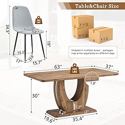 1.Mid-Century Modern Farmhouse Style – This dining room table set for 6 combines a rustic wood tabletop with a sleek modern base, blending farmhouse charm with contemporary elegance. Perfect for kitchens, dining rooms, or open living spaces. 2.Wood & Modern Dining Table Set for 6 – Includes a 63" farmhouse rectangular dining table and 6 upholstered chairs, comfortably seating families or guests. Ideal for daily dining, dinner parties, or holiday celebrations. 3.Durable Dining Tabletop with Modern Base – The 1.8" thick MDF rustic tabletop is sturdy, crack-resistant, and built for long-term use. This dinner table set for 6 with U-shaped base provides excellent stability, making this 7 Piece dining table set for 6 reliable for everyday meals. 4.Fabric Cushions with Metal Legs – This kitchen table chairs set of 6 features soft fabric upholstery with high-density foam cushions for lasting comfort. The breathable, skin-friendly fabric keeps seating cool and comfortable in all seasons, while sturdy metal legs provide reliable support and a modern look. 5.Easy Assembly & Low Maintenance – This dining table set for 6 with chairs comes with clear step-by-step instructions for quick assembly. The table installs easily, and the chairs feature a one-piece seat with metal frame and legs for effortless setup.