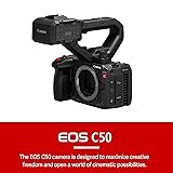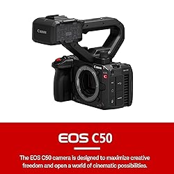 - The EOS C50 camera is designed to maximize creative freedom. The compact, full-featured camera body includes Canon’s newly developed 7K full frame CMOS sensor with 3:2 open gate internal recording capabilities, 4K/120P and Cinema RAW Light up to 7K/60P. The EOS C50 features Canon’s next-generation Dual Pixel CMOS AF II, simultaneous 2K crop recording, built-in Frame.io Camera-to-Cloud integration, and supports XC protocol which allows for remote control over IP via Wi-Fi® or a compatible third-party USB-C ethernet adapter. The included detachable top handle adds two full-size XLR audio inputs, a start-stop button, and a zoom rocker. In addition, this camera can capture 32MP still images in Photo mode. The EOS C50 seamlessly integrates into almost any production environment, delivering flexibility and outstanding image quality in a package that practically fits in the palm of your hand.