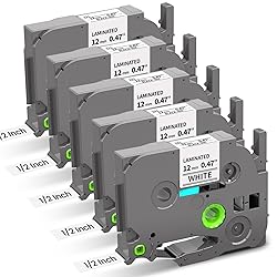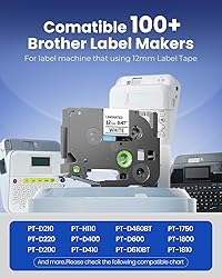 Size: 1/2”(0.47”) wide x 26.2 ft. (8m) long/ Pack, 5 pack replace for brother p touch label tape reducing per-label cost by 62% compared to single purchases Long-Lasting 12 mm 0.47 laminated white tape, strong durability and longevity, withstands water, fade, sunlight and high/low temperature from-22° (-30°C) To 258° (120°C) Pre-cut backing, peel and stick with ease! Applying labels is quick, and when it's time to make a change, our replace ptouch label tape remove smoothly without leaving sticky residue This label maker tape produce clean, high-contrast lettering that gives storage containers, files and wiring a neat, uniform appearance. ptouch tape 12mm 0.47 white help maintain workplace aesthetics while improving functionality Tze231 compatible with Brother P-touch Label Maker: PTD210, PTD220, PT-H100, PTH110, PT-H111, PT-D200, P300BT Cube, PT-D200G, PT-H101GB H101C H100R H101LB H75 H100 H101 H105 H107 H107B H108 H110 H200, PT-900 1000 1005 1080 1010 1250 D200 D210 D400 E100 E110 GL200, PT-P700 P750W PT-1090 1230 1250 1290 2100 2430PC PTE100VP, PT105WB PT-H300 H300LI H500LI, 1190 PT-11Q PT-1230PC 1880C 1880SC 1880W 1890C 1890SC 1890W 2430PC PT-6100 PT-D200 D200G D210 PT-D400 D400AD D400VP D450 D600 D600VP D800W... Note: Not compatible with any M-K tapes, Not compatible PT-N(Btag) & TC Labeling tapes