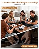 One-Touch Automatic Shuffling:Simple one-button operation shuffles 1 or 2 decks in just 3–5 seconds; saves time compared to manual shuffling and perfect for poker nights or family game sessions 2 Deck Shuffling Capacity:Card shuffler can hold and shuffles two standard decks at once; ideal for poker nights and UNO games Low Noise & Anti-Stuttering:Low noise motor provides smooth and reliable shuffling without card jams; card shuffler machine allows for uninterrupted gameplay Wide Card Compatibility:Automatic card shuffler works with various card sizes including poker, bridge, rummy, and Uno cards for versatile gameplay options Long-Lasting 2000mAh Battery:Rechargeable battery supports up to two week of regular use on a single charge for extended gameplay. No more wasting money on disposable batteries Portable and Includes Storage Bag:Compact and lightweight design,card shuffler includes a carrying pouch for easy transport to parties or trips