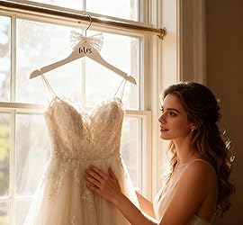 - Capture the magic of your wedding day with a detail that speaks volumes. Our exquisite Bride and Groom Wooden Hanger Set is more than just a functional item; it's a beautiful part of your wedding story, designed to be treasured long after you say "I do." (Detailed Product Breakdown) ✨ Exquisite Design for the Perfect Pair Celebrate your union with a set made just for the two of you.The bride hanger is crafted in a stunning white finish, adorned with a soft, satin white bow that radiates purity and grace. Its perfect match, the groom's hanger, boasts a handsome vintage stain and a sophisticated black bow tie. Together, they create a harmonious bride and groom hangers set that symbolizes your partnership. 🔧 Functional Elegance for Your Wedding Attire We created thiswedding dress hanger with purpose. It is built from solid wood to securely hold the considerable weight of a bridal gown without bending. The wide, contoured shape supports the shoulders of the dress perfectly, ensuring it looks flawless from the moment you put it on. This is the reliable bridal hangers for wedding dress you can trust on the most important day of your life. 📸 Elevate Your Wedding Album In the world of weddings,it's all in the details. This bride hanger for wedding dress is a dream for photographers. It transforms your hanging gown into a stunning visual centerpiece for your "getting ready" photos. 💝 From Your Big Day to Every Day The usefulness of thisbridal hanger set extends far beyond your wedding. After the celebration, integrate these beautiful wedding hangers into your home. Use the bride's hanger for a special evening dress or a delicate blouse, and the groom's for a suit or crisp shirt. It’s a daily reminder of your love and commitment. 🎁 An Unforgettable Gift Idea Delight any soon-to-be-wed couple with the perfect present.This set of bridal hangers for wedding dress is a gift that combines thoughtfulness with practicality. It shows you’ve paid attention to the important details and are giving them a beautiful memento they might not have thought to get for themselves.
