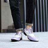- Step out in timeless sophistication with these classic 1920 design two-tone wingtip oxford dress shoes. Available in many striking color combinations - elegant green and white, charming pink and white, bold red and white, purple and white, lilac and white, blue and white, gray and white, classy black and white, brown and white, tan and white and hot black and red, these brogues deliver both style and versatility. The shoes feature meticulous brogue detailing with decorative perforations across the synthetic leather upper, creating an intricate pattern that speaks to traditional craftsmanship. The lace-up design ensures a secure and adjustable fit, while the contrasting white panels provide a dramatic visual effect against the colored sections. The sturdy black sole offers reliable traction and durability for all-day wear. These oxfords strike the perfect balance between classic design and contemporary color choices, making them suitable for formal occasions, business wear, or adding a sophisticated touch to smart casual outfits. The quality synthetic leather construction molds to your feet over time, providing increasing comfort with each wear. These shoes are an excellent choice for those who appreciate traditional styling with a modern twist.