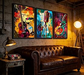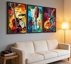 Guitar wall art includes three 3-sheet 12x16 inch posters that beautifully showcase the essence of music. Featuring unique musical elements and artistic style, these instrument decorations are a must-have for your music decor collection Let this set of graffiti wall art immerse you in the irresistible fusion of rock guitar and art. Don't miss these music retro room decorations A perfect modern Music Theme wall decoration painting for your home,Bars, clubs, music rooms, guitar rooms, recording studios, living room, office, bedroom, kitchen, apartment, corridor, restaurant, bar, etc. The unique wall art adds an elegant artistic atmosphere to you Looking for a special gift for a music lover? Look no further! These vintage music wall art pieces are the perfect gift for birthdays, holidays, or any occasion. Surprise your loved ones with a thoughtful and meaningful gift that will add charm to their living space If you have any questions about our bar wall decoration, you can contact us by email and we will reply you as soon as possible