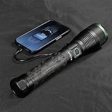 - Unleash Pure Lighting Power! In Turbo mode, the Skylar R from Police Security Flashlights delivers an astonishing 10,000 lumens, turning night into day. This ultra-bright LED flashlight features a built-in USB charging system and a power bank for keeping small electronics charged on the go. Powered by a 26650 rechargeable lithium-ion battery, it offers up to 32 hours of runtime. The Skylar R offers advanced safety technology. For instance, to prevent overheating, holding the on/off button for 3 seconds will lock the flashlight in the off position. Additionally, if the Skylar is accidentally left on with the light facing downward, the orientation sensor activates automatically dimming after 3 seconds and turning off completely after 30 seconds. With multiple modes, twist focus and added safety, the Skylar R is designed to handle any situation with ease and versatility.